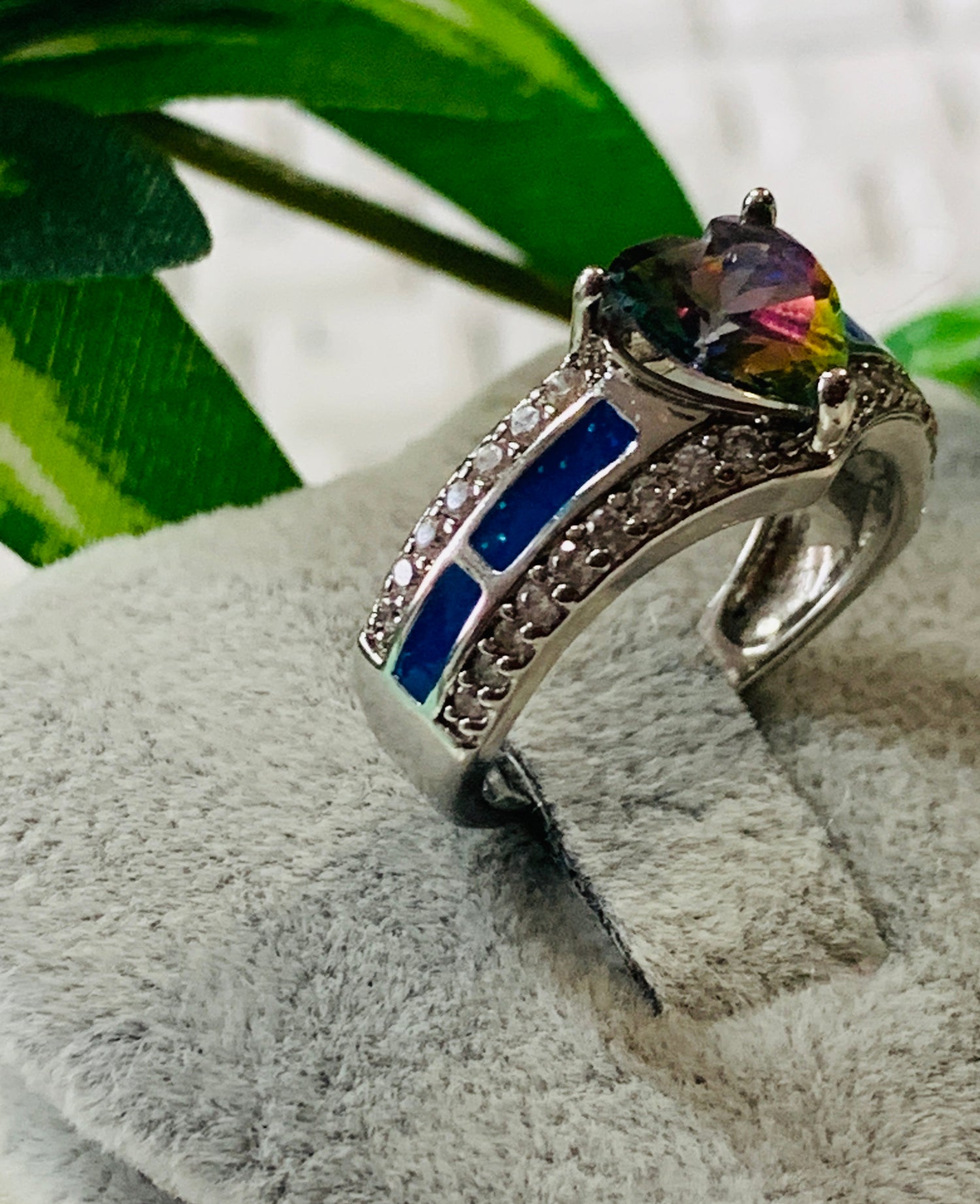 Anillo pierda tornasol corazón con circonia cubica,